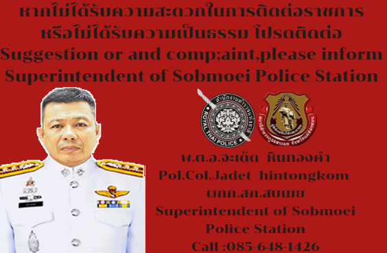 พ.ต.อ.จะเด็ด  หินทองคำ ผกก.สภ.สบเมย ประกาศเจตนารมณ์ของหน่วยงาน ประกาศ เจตนารมณ์ในการป้องกันการและต่อต้านการทุจริตชองสถานีและประกาศ เจตนารมณ์ไม่รับ ของขวัญ และสินบนอื่นใด ทุกชนิดจากการปฏิบัติหน้าที่ ในหน่วยงาน