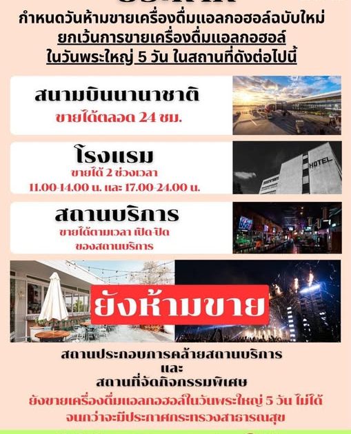 กำหนดวันห้ามขายเครื่องดื่มแอลกอฮอล์ฉบับใหม่ ยกเว้นการขายเครื่องดื่มแอลกอฮอล์ในวันพระใหญ่ 5 วัน