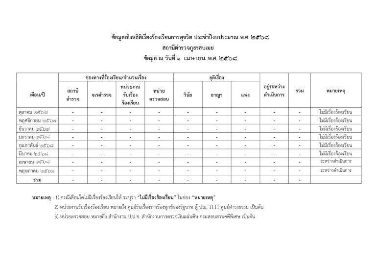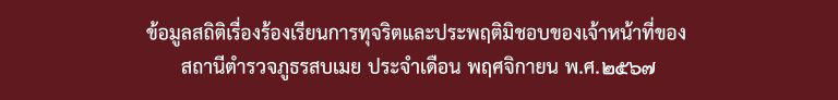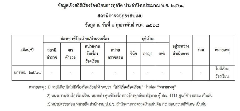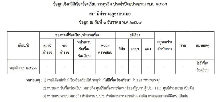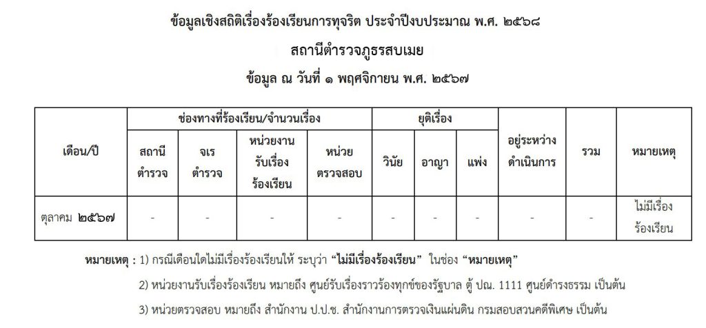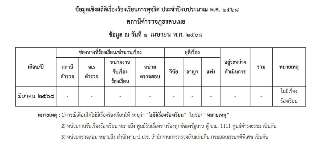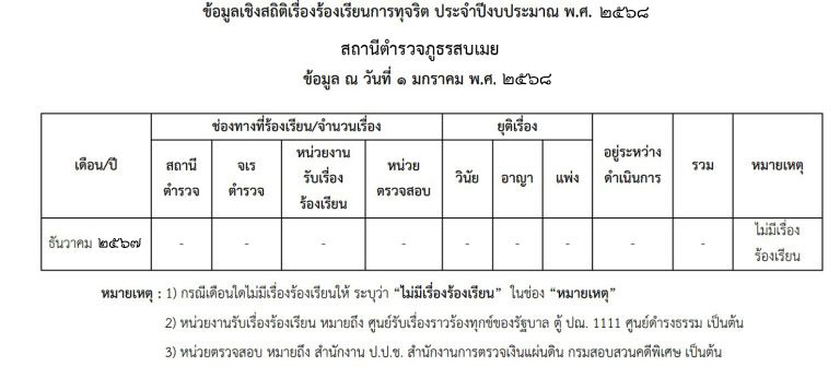 ข้อมูลสถิติเรื่องร้องเรียนการทุจริตและประพฤติมิชอบของเจ้าหน้าที่ของสถานีตำรวจภูธรสบเมย